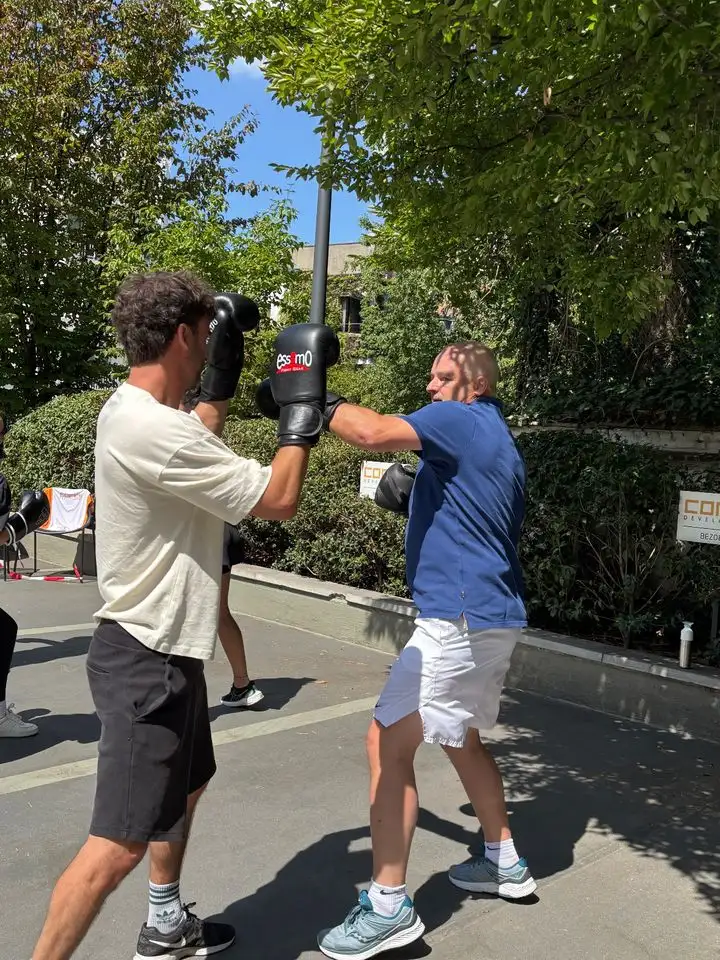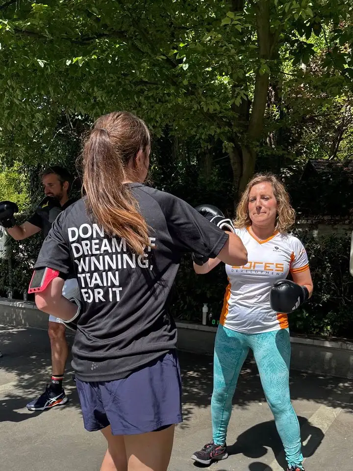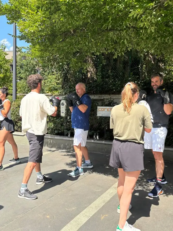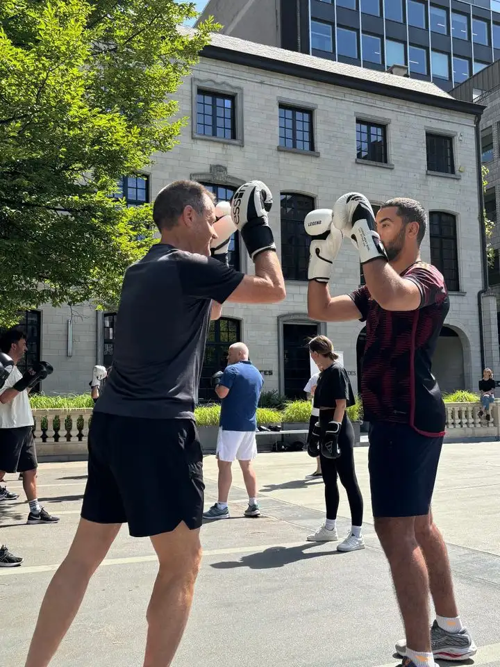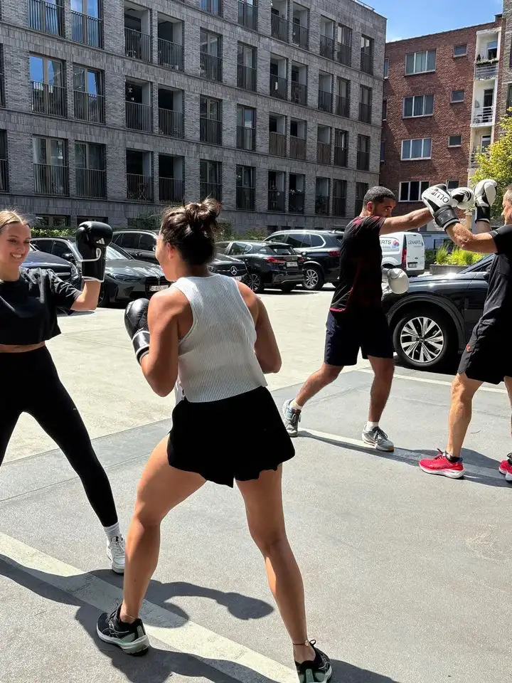 "Een welgekomen energieboost en perfect om de teamspirit aan te wakkeren! In een job waar we meestal zittend werken, was deze boksworkout een sportieve uitdaging van formaat. Even het hoofd leegmaken, het lichaam activeren en samen met collega’s zweten: precies wat we nodig hadden. De perfecte balans tussen fysieke inspanning en mentale ontspanning - al moesten we soms goed nadenken bij de bokscombinaties die Brian ons voorschotelde. ;) We kijken nu al uit naar de volgende bokssessie met Brian, want dit smaakt absoluut naar meer!"